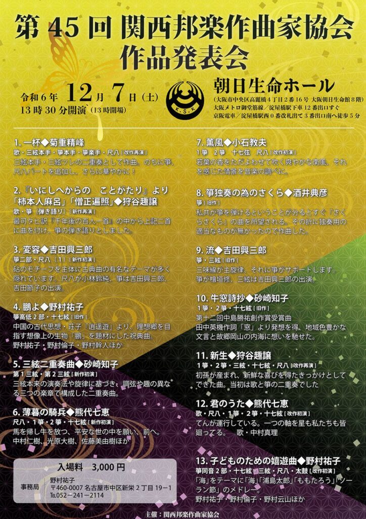 【12/7】第45回 関西邦楽作曲家協会 作品発表会